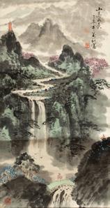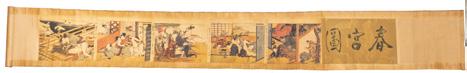 Chinese Watercolor And Gouache on Silk Ca. 1950, H 7.25” W 21” 30.5lbs