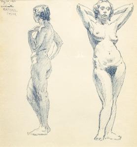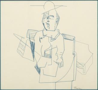 Jack Faxon (American, 1936-2020) Sketch in Blue Ink, Official Standing H 7” W 8”