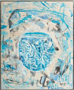 Jack Faxon (American, 1936-2020) Acrylic on Masonite “Mystery in Blue”, H 30” W 24”