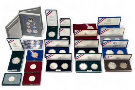 United States Mint Commemorative Silver Proof Dollars & Coin Sets, 1982-2005, H 0.75” W 6” Depth 3.5” 20 pcs