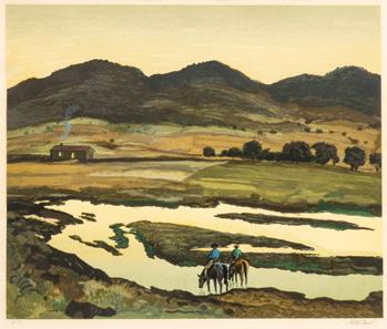 Ray Flemming (American, B. 1936) Woodblock Print 1962, “Elda”, H 24” W 15”