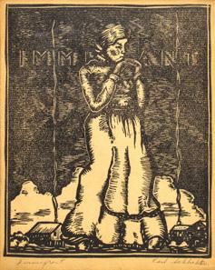 Karl Schlichter (German) Etchng on Paper Ca. 20th Century, “Immigrant”, H 7.2” W 5.75”
