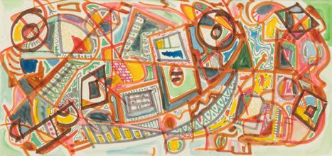 Jack Faxon (American, 1936-2020) Watercolor “Abstract - Multi Color”, H 9” W 11”