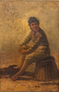 European Oil on Canvas, Ca. Late 19th/early 20th C., Neapolitan Fishing Boy H 21.5” W 13.5”