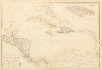 Joseph Wilson Lowry (Bristish, 1803-1879) Hand Colored Engraving on Paper Ca. 19th Century, “West Indies And Central America”, H 15” W 21”