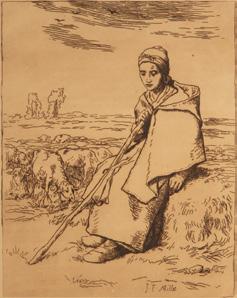 Jean-Francois Millet (French, 1814-1875) Engraving on Paper, H 10” W 8.75”