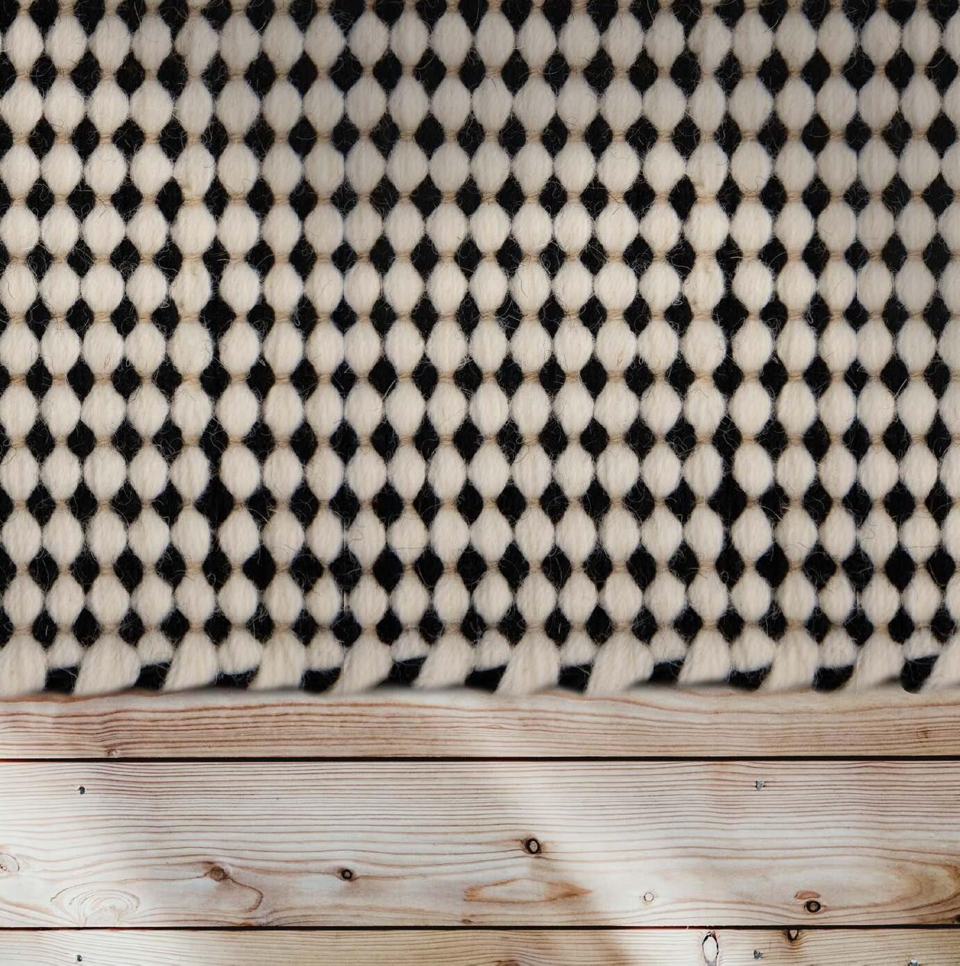 Creating a Ferreira de Sá rug is a unique experience. The techniques are flexible and allow you to choose different designs, combinations, colors and finishings, all according to your individual taste. Possibilities are endless and you can even choose to divide the rug into different stripes, each of them woven with a different pattern, color and/or materials (find out more about pattern combinations, on pages 10 - 17).