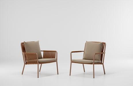 Cala may be used for outdoor dining as well as a chair to lounge in. The wide selection of metal coatings, rope colours and cushion fabrics offer many possibilities to tailor the identity of the chair to suit different projects.