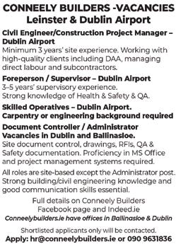 ROOFING AND BUILDING contractor available. Repairs and new builds. Fully insured. Contact Mark Carney on 087 1302040 for enquiries.