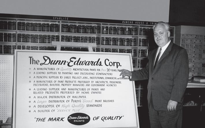 A medida que crecieron las ventas de pintura, Frank se asoció con su amigo Arthur Edwards, cuya experiencia incluía trabajar como pintor y vender pinturas de la marca Dutch Boy a contratistas de la National Lead Company. En Dunn’s, Arthur trabajó con químicos para desarrollar fórmulas que resolvieran problemas y las probó en lugares de trabajo, utilizando los comentarios de los pintores para refinar cada producto. Su visión era simplemente fabricar una buena lata de pintura y venderla a un precio justo.