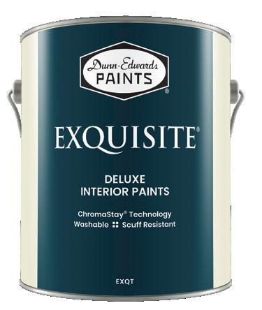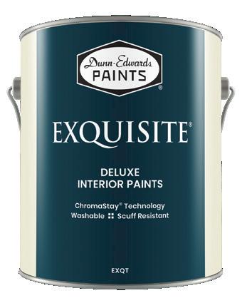 The EXQUISITE Collection is a complete line of deluxe, interior, ultra-low VOC, acrylic paints featuring ChromaStay Technology that makes it truly washable while being stain, scuff, burnish and color rub-off resistant. ChromaStay Technology is a combination of proprietary technologies, including Ceramic Technology, that provides exceptional durability to Dunn-Edwards coatings.