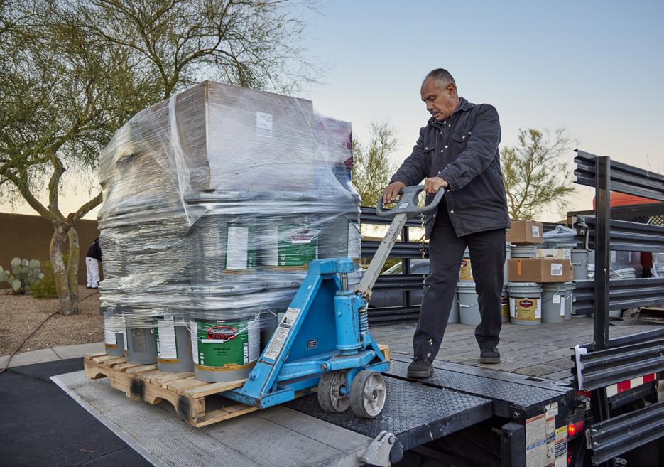 The logistics were tight, but over the course of the project and 100+ jobsite deliveries, including occasional weekend runs, 12,000+ gallons of product and countless sundries were delivered as needed.