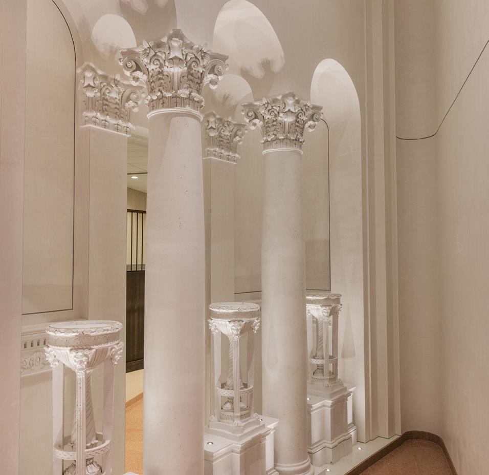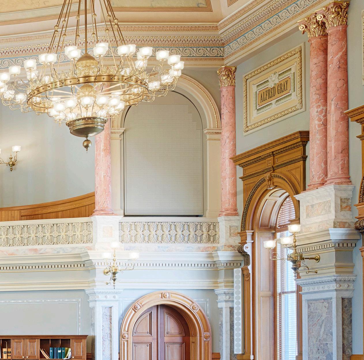 The pink columns surrounding the House of Representatives Hall are the only examples of simulated marble throughout the entire Statehouse.