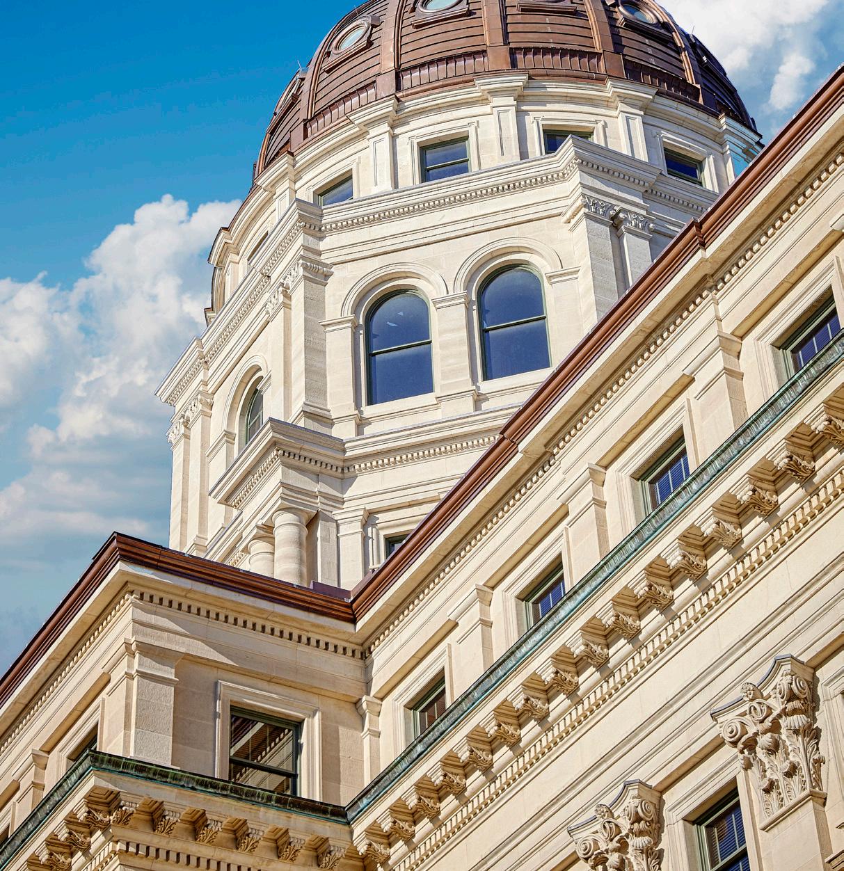 Located in the heart of Topeka, the historic Kansas Statehouse is listed on the National Register of Historic Places and required coordination with the State Historic Preservation Office. Specialty designers and artisans were involved during all phases of design and construction.A safety record is nothing to scoff at when it comes to a $330 million project, especially when four years of exterior work is performed at a height range of 10 to 300 feet above ground level. But, that is exactly what our team achieved on the Kansas Statehouse.