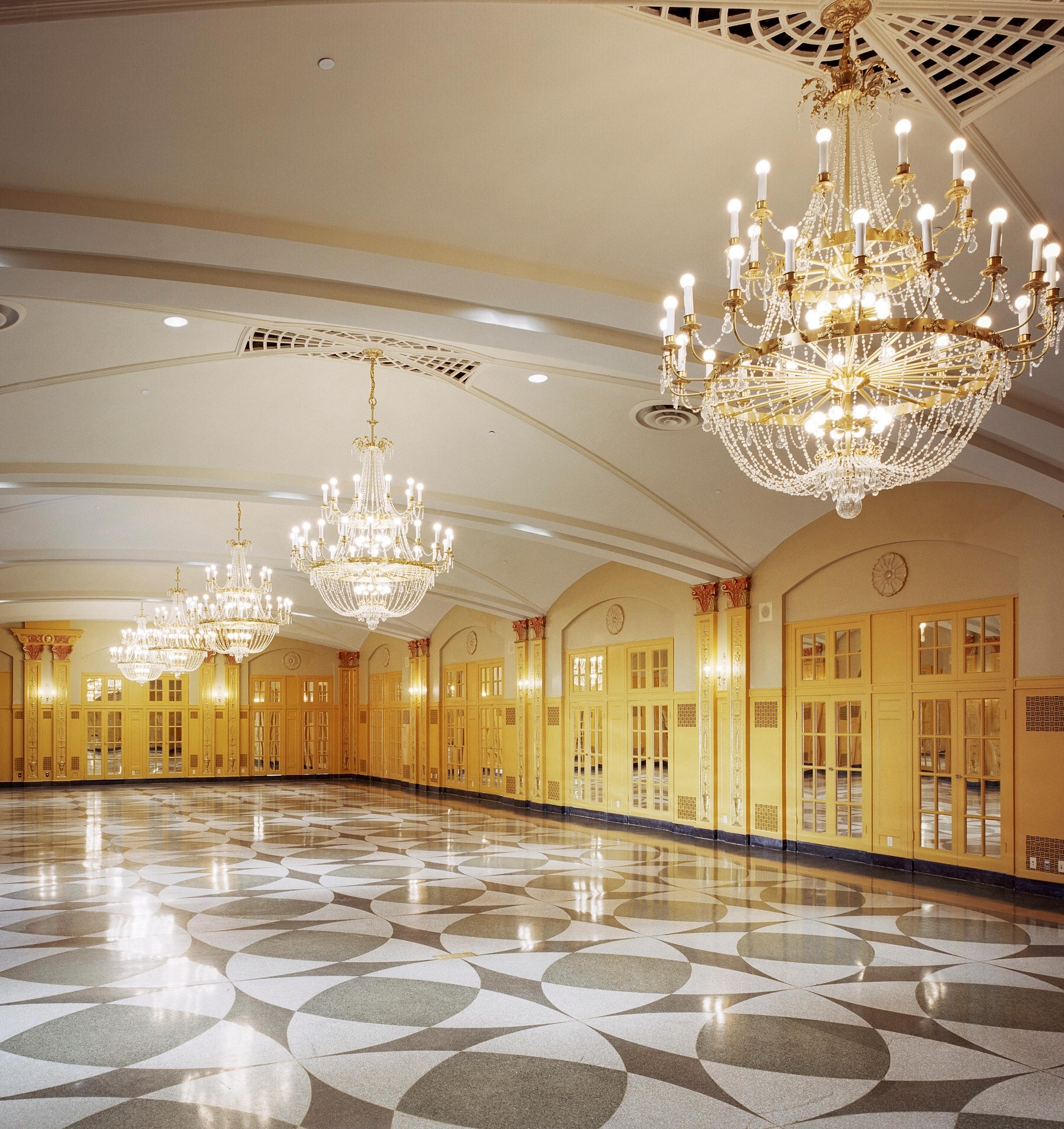 The grand ballroom had once been the highlight of the hotel, having hosted a variety of parties and celebrations. Over time, the flooring had endured extensive damage; however, through the review of existing black and white photos, craftsmen were able to restore the opulent flooring that once again serves as a beacon for social events.