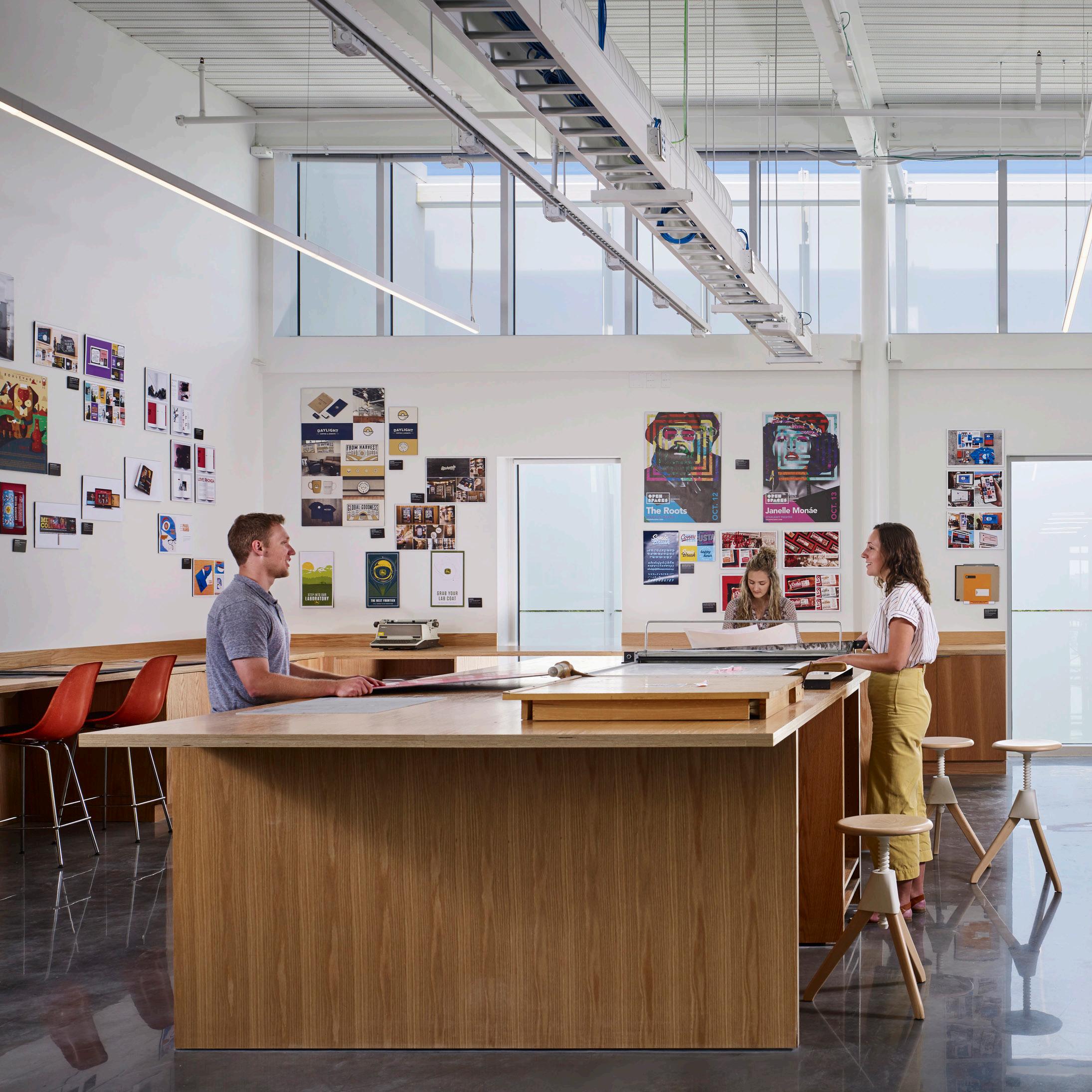The new building brings together graphic design, sculpture, ceramics, metals, painting, drawing, photography, and film-making into a single facility. Designed to promote a learnby-doing approach and enhance collaboration across disciplines that were previously spread across campus.