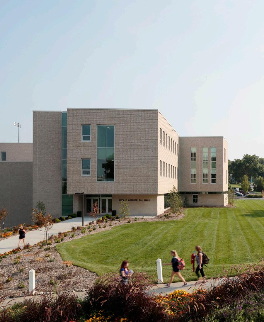This 67,522-square-foot new academic building on Rockhurst University’s campus serves as the primary classroom and lab building for all Rockhurst University students. The Pedro Arrupe, S.J. Hall serves a broad range of curricular areas, from math and science to humanities and theology. The teaching needs of each subject are vastly different; therefore, the classrooms and labs support a wide palette of learning styles.