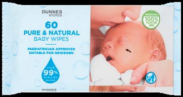 DUNNES STORES Baby Wipes 60pk - 64pk Range 89c - €1.99 EACH (1c - 3c each)