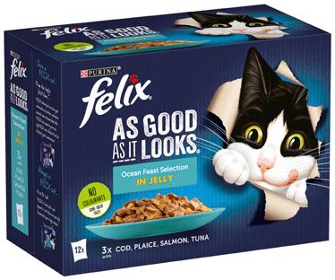 Felix Cat Treats 50gm-60gm Range €2 EACH (€33.33 - €40/kg) Felix As Good As It Looks 12x85gm Pouch Range WAS €8.10 - €7.99 NOW €6.50 EACH (€6.37/kg)
