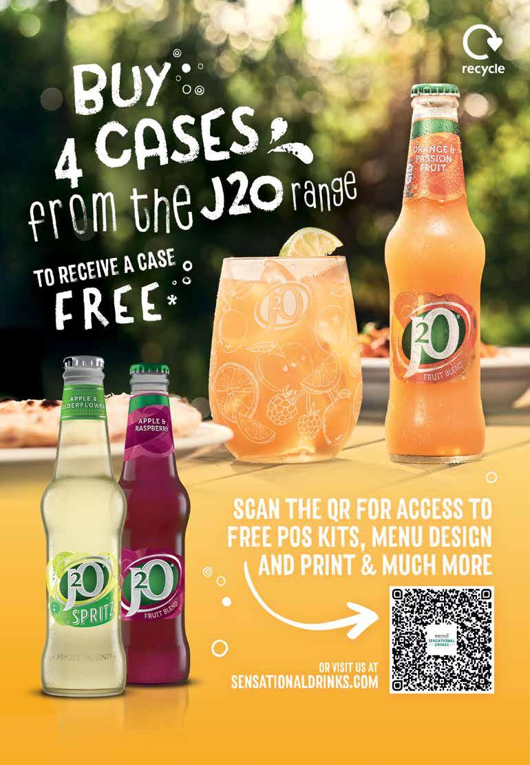 In The Spotlight Did you know you can order online at www.dunnsfoodanddrinks.co.uk? 103 SOFT DRINKS *Terms and conditions apply. Deal runs from July 1st to August 31st 2023. Three deals per customer per week. Qualifying range includes J2O Blends and J2O Spritz 275ml NRB x24. Free case is J2O Orange & Passion fruit 275ml NRB x24. While stocks last. Glassware imagery is for visual purposes only Promoter: Britvic Soft Drinks, Breakspear Park, Breakspear Way, Hemel Hempstead HP2 4TZ 34349_Britvic_J20 brochure AD_A4.indd 1 30/01/2023 09:31