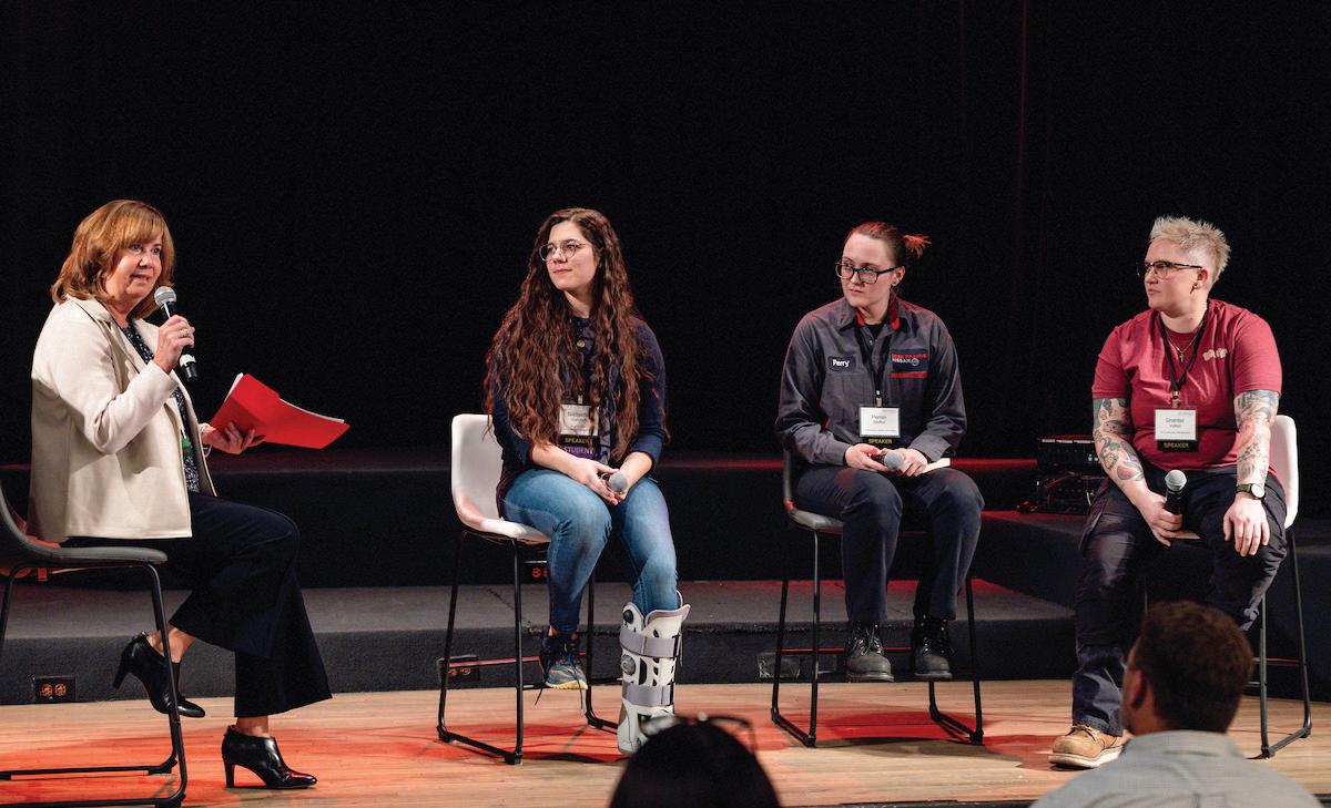 This year's event, "A View from the Field: Insights from Industry Professionals" included a panel discussion from three Dunwoody alumnae: Bridgette Dalldorf '22 Engineering Drafting & Design, Mechanical Designer at Boston Scientific; Perian Staffan '21 Automotive Service Technology, Journeyman Technician at Eden Prairie Nissan; and Shantel Volker '24 Construction Management, Maintenance Engineer at the Minneapolis Federal Reserve.