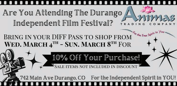 Durango Independent Film Festival, March 4-8, Durango Arts Center and Gaslight Twin Cinema 802 E. 2nd Ave. and 102 E. 5th