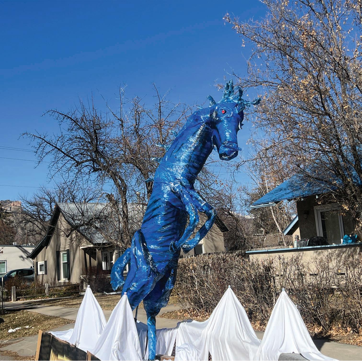 Blucifer made a stop-over on a Durango sidestreet after his romp through the Snowdown Light Parade last Friday./ Photo by Missy Votel