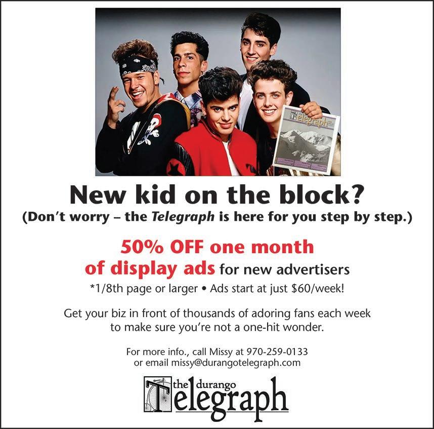 Ads can be submitted by emailing: classifieds@ durangotelegraph.com