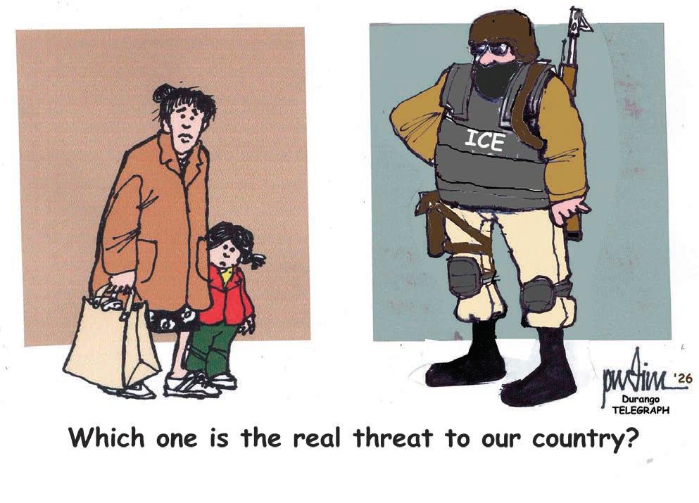 Most Durango folks recognize that America is “having seizures,” as armed masked gangs use lethal violence to attack and round up innocent people, with no legal redress or accountability. Some compare them to the Gestapo, but they also replicate a very American institution – slave patrols – exercising complete if illegitimate authority to abduct, try and murder residents and citizens on the spot based on racist and partisan criteria.