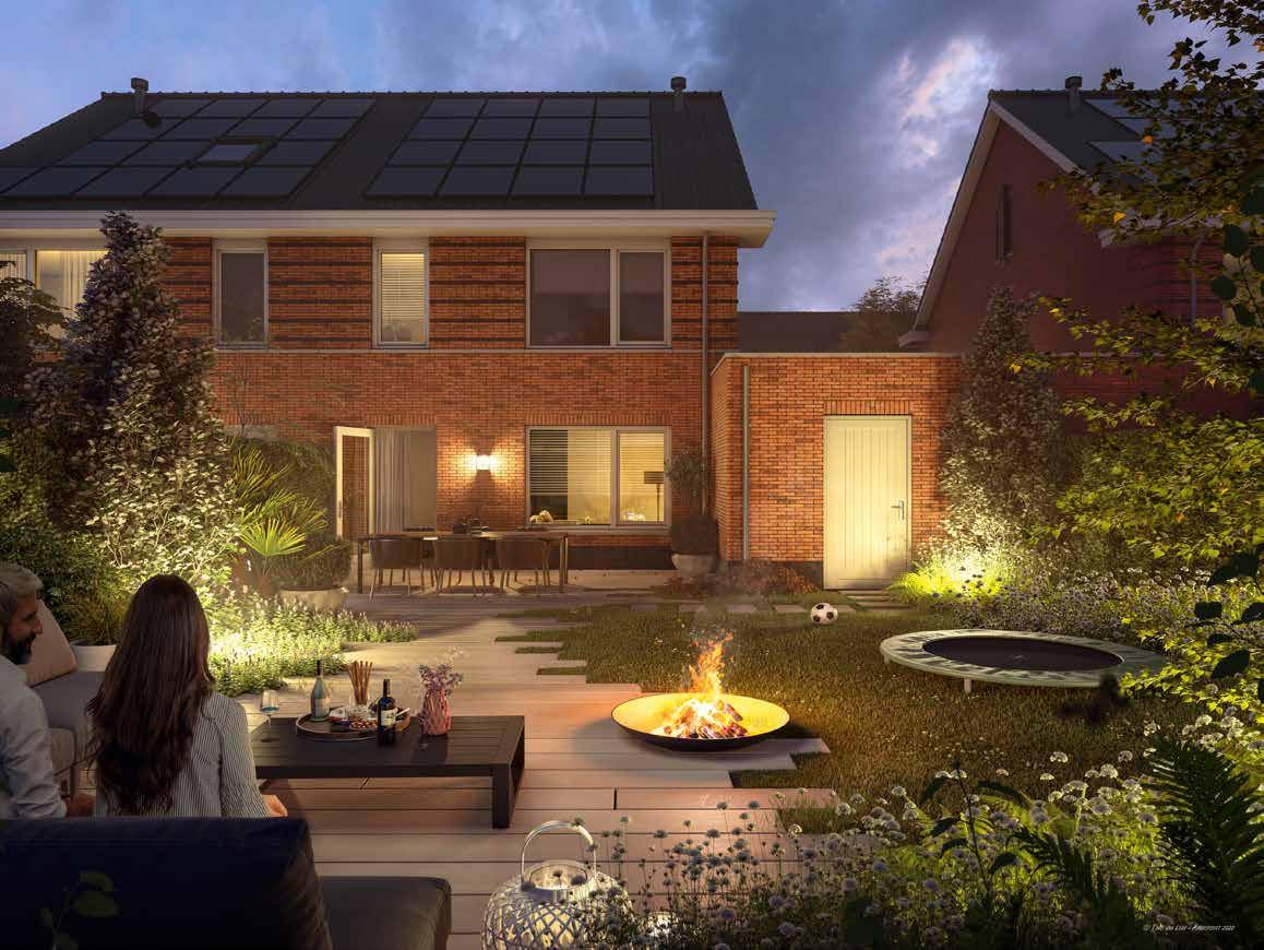 Een huis koop je niet voor even. Deze investering moet dan ook toekomstbestendig zijn. In Wickengaard is uiteraard ook aan duurzaamheid en energiezuinigheid gedacht. Hoe energiezuinig een woning is, wordt sinds inmiddels uitgedrukt in BENG 1, 2 of 3 (Bijna Energieneutrale Gebouwen). Deze waarde geeft de hoeveelheid energie aan die er nodig is om een woning te verwarmen, ventileren en verlichten. Hoe hoger de waarde, hoe energiezuiniger de woning, dus hoe beter de woning is voor ons klimaat. Alle woningen in Wickengraad voldoen aan BENG 3. En ze worden natuurlijk gasloos uitgevoerd. Hoe dat kan? De woningen zijn voorzien van een individuele bodemwarmtepomp (huur, met optie tot koop) en pv-panelen op het dak. Het gebruik van aardwarmte is een zeer duurzame en stabiele energiebron. De individuele gesloten bodemwarmtewisselaar onttrekt de opgeslagen energie uit de aardbodem en zet deze in voor een constant en comfortabel woonklimaat. Bijkomend voordeel is dat de warmtepomp op warme zomerse dagen ook zorgt voor passieve koeling van de woning. De warmtepomp wordt gevoed door de energie die onder andere de zonnepanelen genereren.