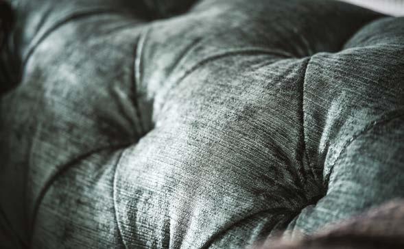 The fabric or leather is expertly marked for the upholsterer, ensuring it is placed centrally onto the furniture and perfectly aligning with the predrilled materials in preparation for the buttons to be attached. Once the upholsterer is happy with the tension of the fabric or leather, each button is tied off twice, securing them into position. Next, the beautiful, pleated arm and back details are tirelessly arranged individually. The upholsterer will then assess their work and if they are completely satisfied, our high-quality coil spring units are fitted in readiness for the sumptuous goose feather or optional seat cushions.