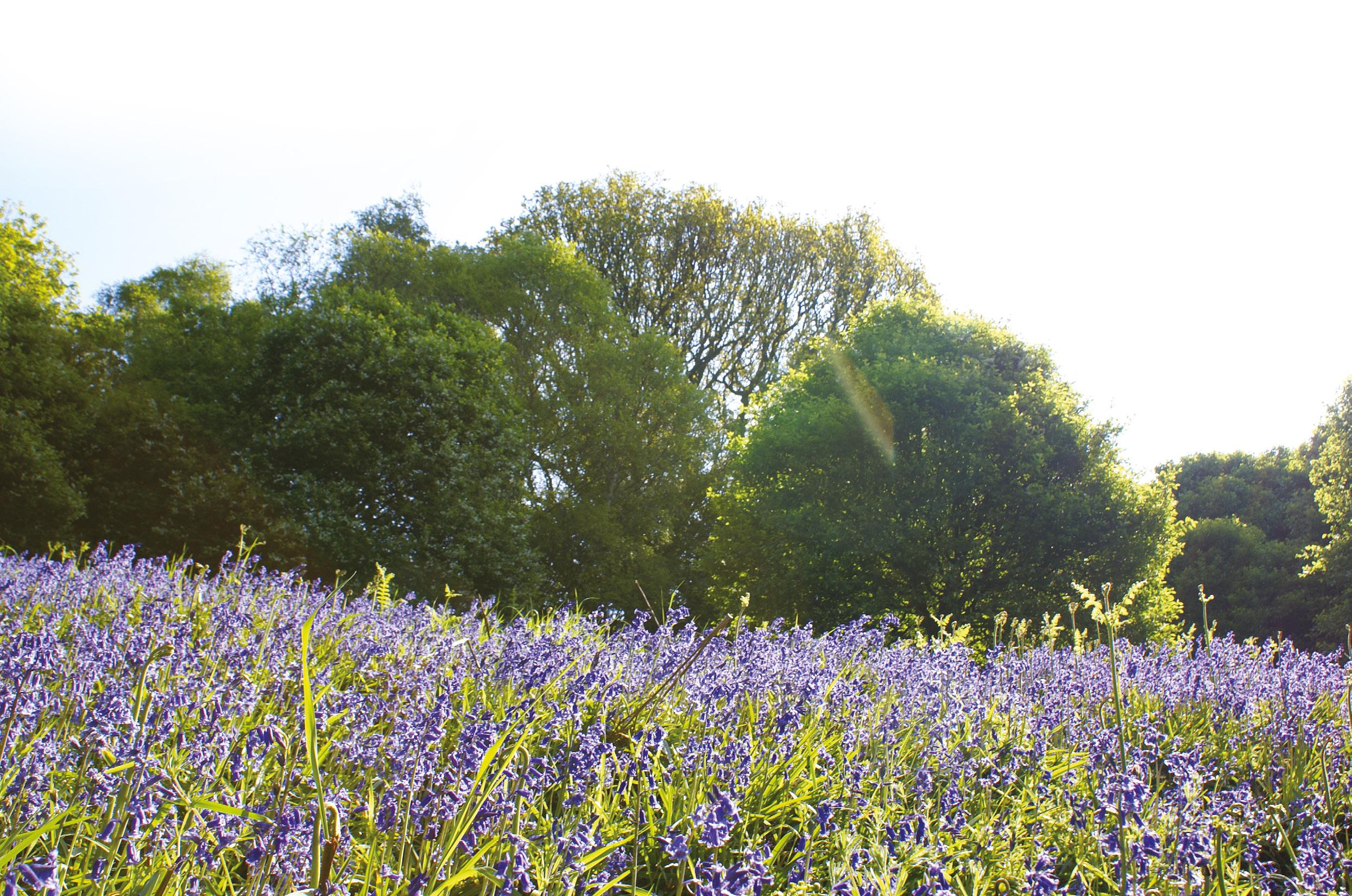 Bluebells at Baal Hill Wood Nature Reserve with Bishop’s Oak in the background.