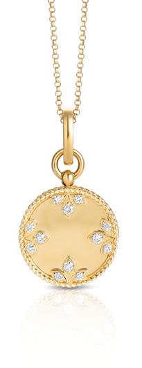 The Medallions collection draws inspiration from Venetian patere, ornamental stone medallions that once decorated façades and conveyed symbolic family messages. Roberto Coin reinterprets this tradition through a colourful wearable medallion featuring a floral motif illuminated by diamonds. The piece represents continual creative growth, blending history, romance and contemporary craftsmanship into an expressive jewel that captures storytelling and artistry in modern form.