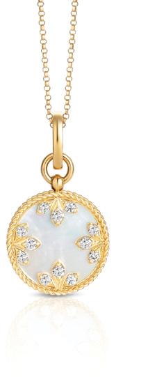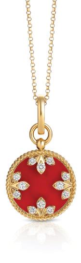 The Medallions collection draws inspiration from Venetian patere, ornamental stone medallions that once decorated façades and conveyed symbolic family messages. Roberto Coin reinterprets this tradition through a colourful wearable medallion featuring a floral motif illuminated by diamonds. The piece represents continual creative growth, blending history, romance and contemporary craftsmanship into an expressive jewel that captures storytelling and artistry in modern form.