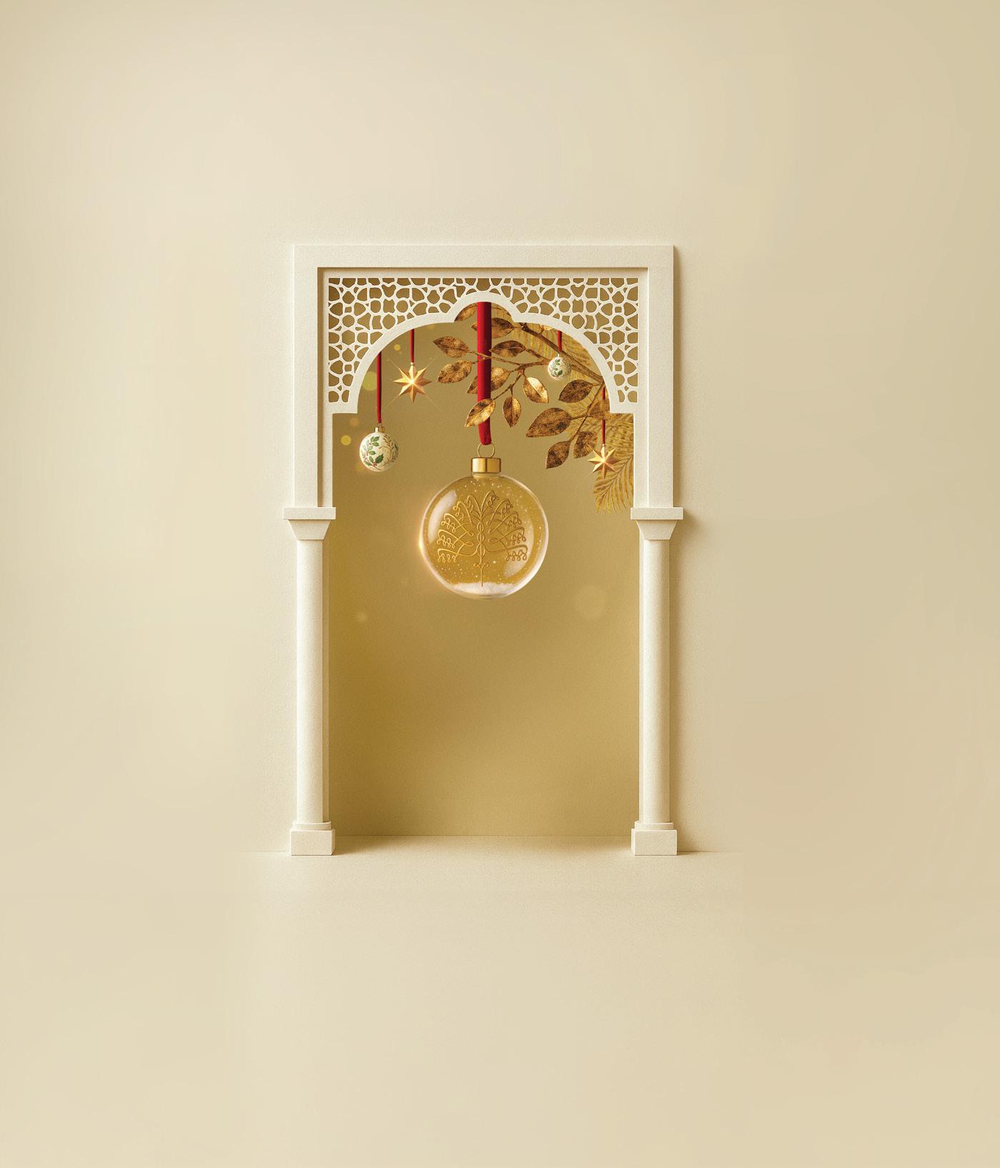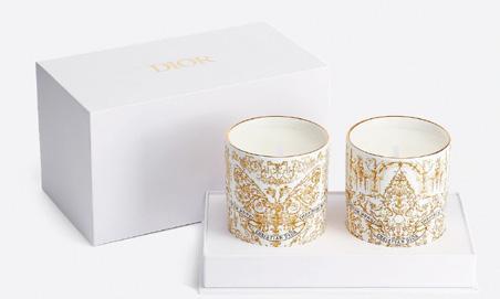 This candle duo in white porcelain features gold-tone Dioresque butterfly and star motifs inspired by baroque theater from the Dior Cruise 2026 show. Sapin Cyprès offers a fresh woodland accord of pine, patchouli and moss, while Griotte Gingembre blends morello cherry, ginger, clove, citrus and tonka bean. Together, they create a festive, poetic atmosphere for holiday interiors.