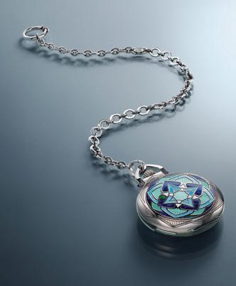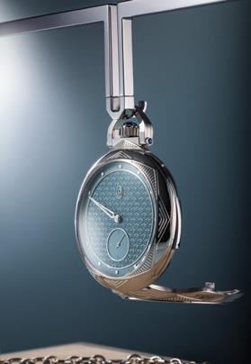 La Ravenale honours Michel Parmigiani’s legacy through a restored 1920s Ed. Koehn minute repeater housed in an engraved whitegold Lépine pocket watch. Its opal and jade marquetry, handengraved bridges, and deep blue dial unite natural geometry with haute horlogerie artistry. Resonant gongs, crafted chainwork, and meticulous restoration transform timekeeping into a poetic celebration of proportion, craft, and harmony.