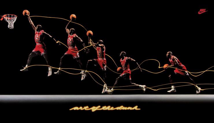 04 An iconic multi-frame study of Jordan in motion, capturing the gravity-defying athleticism that shaped the mythology of Air Jordan