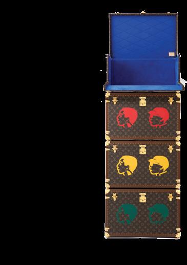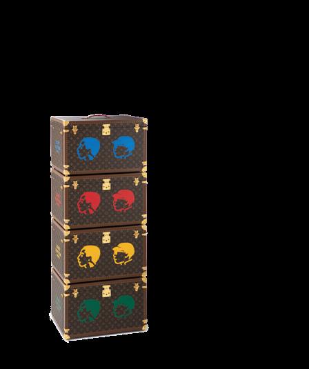The Store-It-All Trunk comprises four stackable trunks in Monogram canvas, each opening from the top and front for effortless access when arranged together. Portraits of Nigo and Pharrell Williams adorn every piece in vibrant colors, matching the microfiber-lined interiors. Cowhide-leather trim, golden brass hardware, S-lock closures and top handles complete this meticulously crafted, functional storage statement for modern living today.