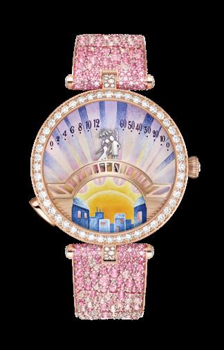 The White Rabbit wristwatch represents a grand-complication creation with sixteen functions, uniting poetic storytelling with advanced mechanics. Its reversible construction, perpetual calendar, sunrise and sunset indicators and the surreal Suspended Time feature define its imaginative character. As the only piece ever offered publicly, it stands as a rare collector’s opportunity, paired with its companion artwork in a landmark dual-lot event.