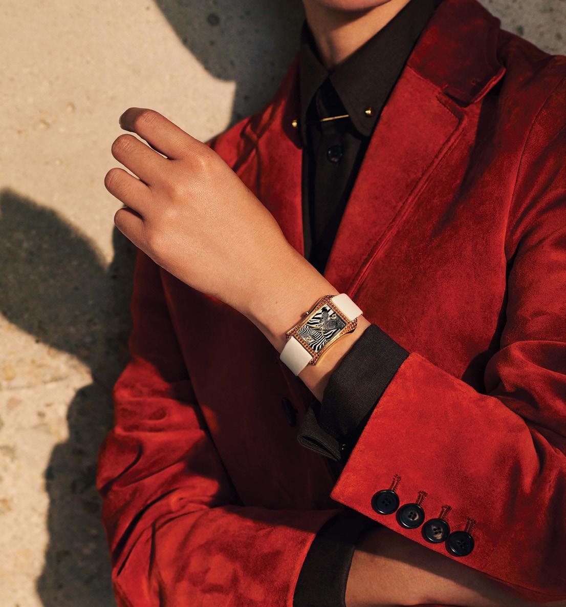 Jacob & Co. created a bespoke wedding band for Benny Blanco in 18k gold engraved with his wedding date, symbolizing enduring commitment. A one-of-one diamond boutique watch was crafted with extensive baguette-cut diamonds, showcasing the brand’s signature innovation. Paired with a platinum tennis bracelet, the pieces celebrate love through meaningful craftsmanship, emotional storytelling and bold jewel-making artistry.