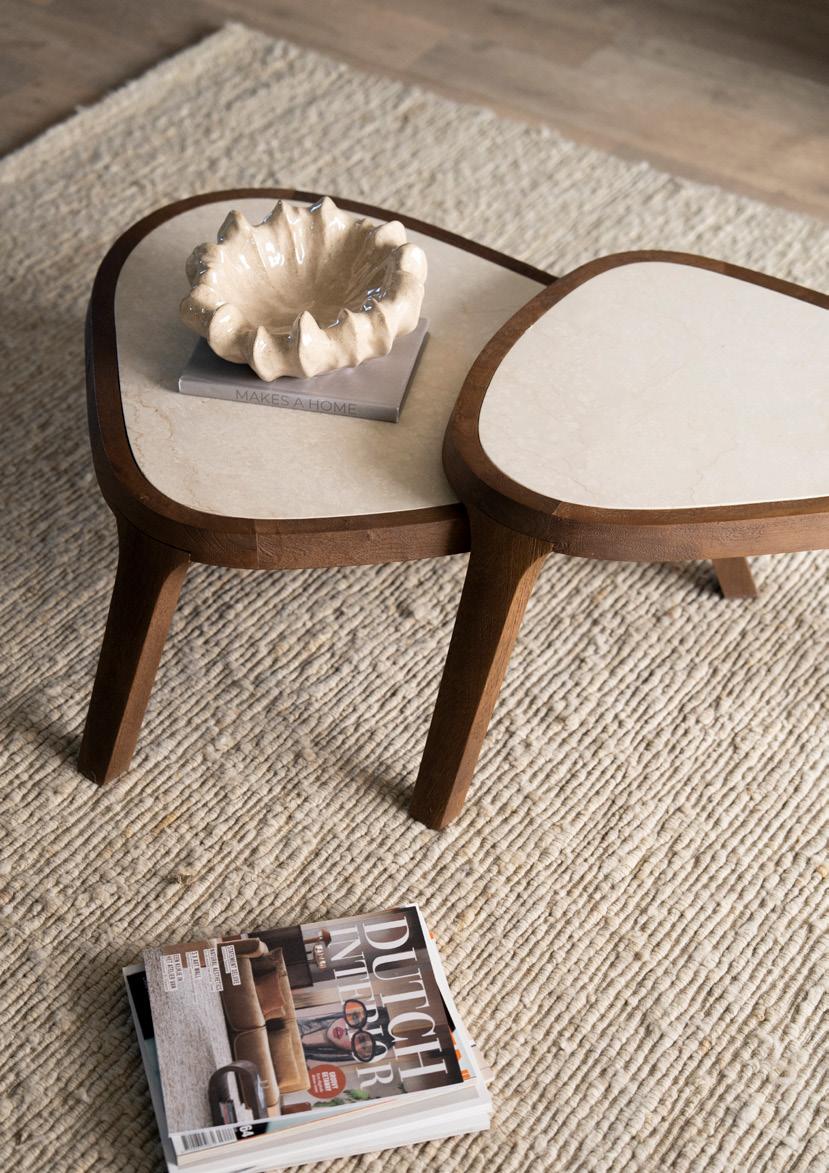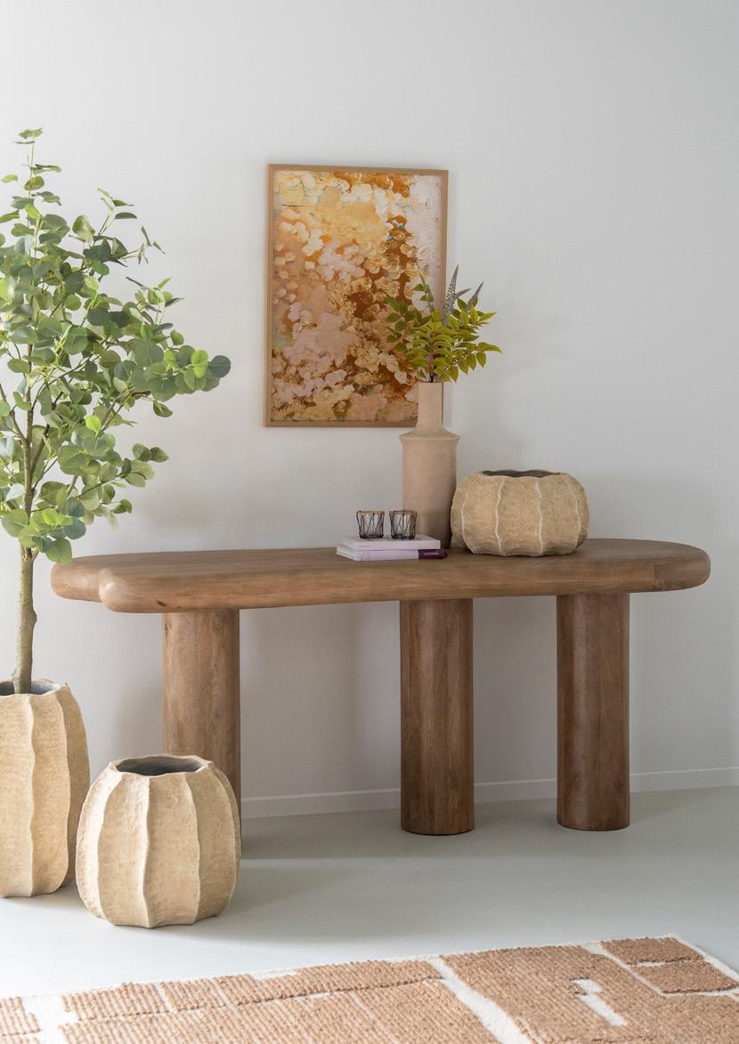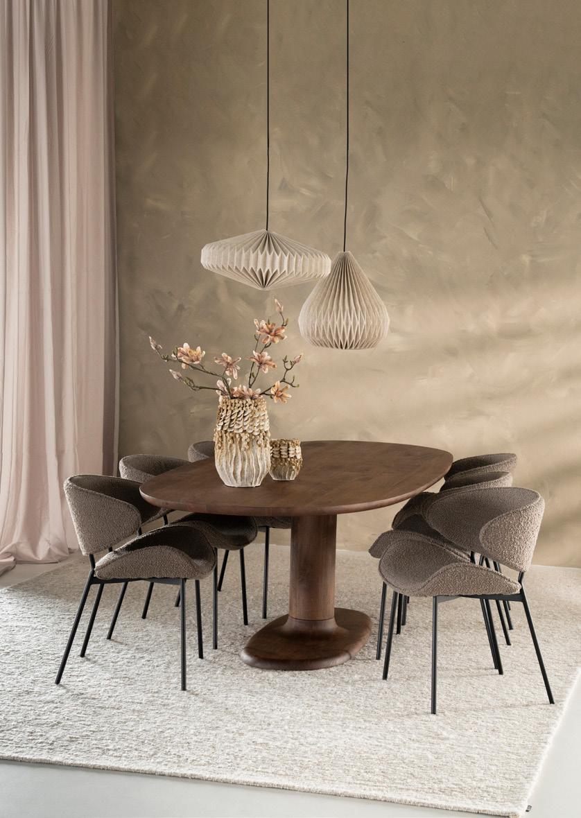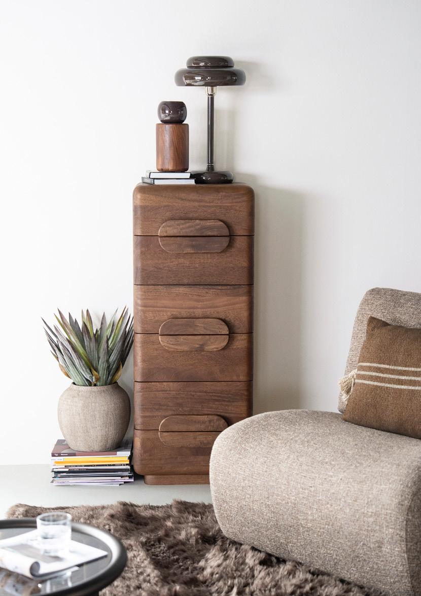 Tafels, kasten, stoelen, je kunt er niet omheen; Hout is hét materiaal en vormt daarmee overduidelijk de basis van de collectie. Van warm donkerbruin hout tot een frisse tegenhanger in licht naturel hout én alles daar tussenin. Door te kiezen voor hout, kies je voor een warme, naturel en tijdloze basis waar je alle kanten mee op kunt.