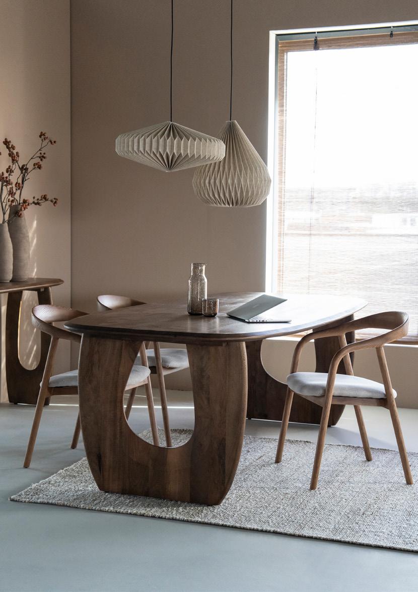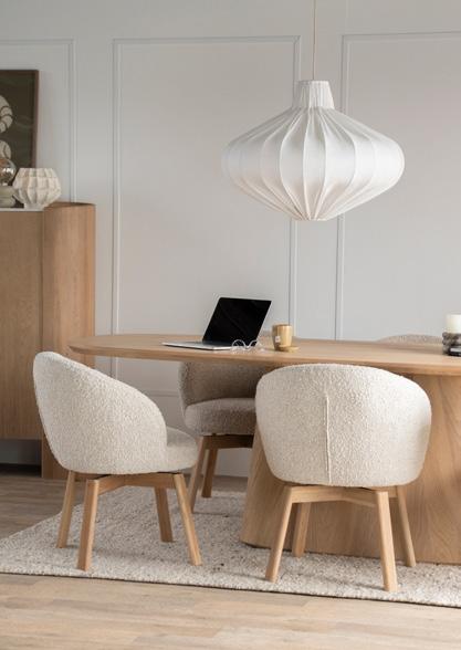 Tables, armoires, chaises : le bois est le matériau qui constitue clairement la base de la collection. Du bois brun foncé chaleureux au bois naturel clair frais, en passant par toutes les nuances intermédiaires. En choisissant le bois, vous optez pour une base chaleureuse, naturelle et intemporelle qui s'adapte à tous les styles d'intérieur.