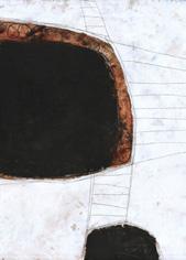 INSPIRATION: Memories or personal moments that create a recognizable and intimate atmosphere. DISCIPLINE: “Intuitive and experimental, combining various materials such as charcoal and ink to create tension and layers.”