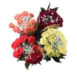 **Processing carnations: Carnations usually come in unopened. They can appear stiff, upright, and tight like a fist. Carnations can take a few days to open. To help the carnation open, hold the flower head in one hand and gently ruffle the petals with the other.