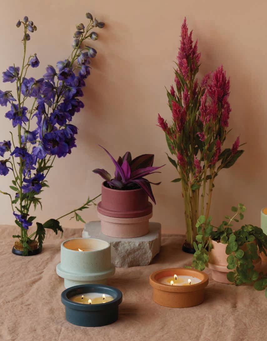 GROUND YOURSELF WHEN YOU SURROUND YOUR ENVIRONMENT WITH OUR ELEMENTS COLLECTION. SOPHISTICATED, YET CLASSICALLY SIMPLE AND MODERN, THESE COLORED CONCRETE CANDLES OFFER FRAGRANCES THAT WILL FILL YOUR SPACE WITH CALM.