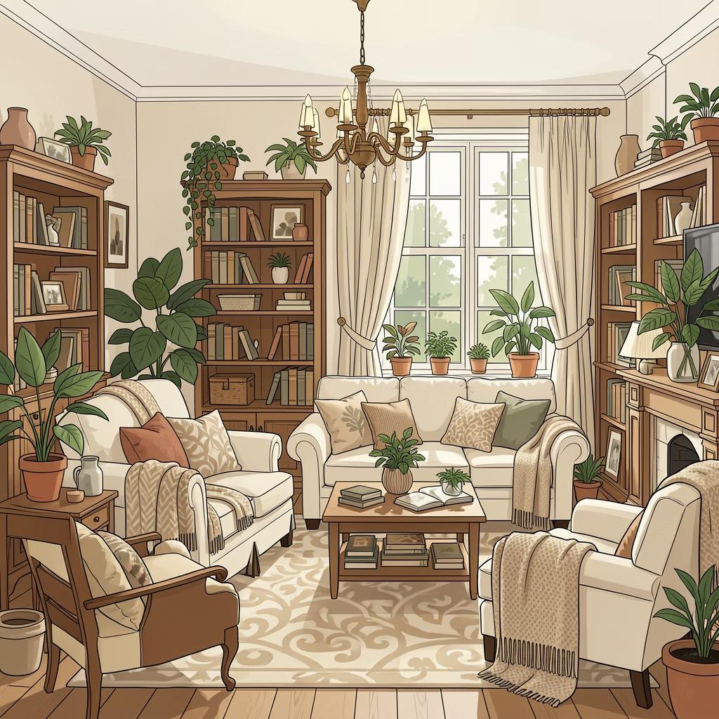Start with one statement piece: dark wood shelving, a coffee table, or console. Build colour palette around it with soft neutrals in textiles and walls.