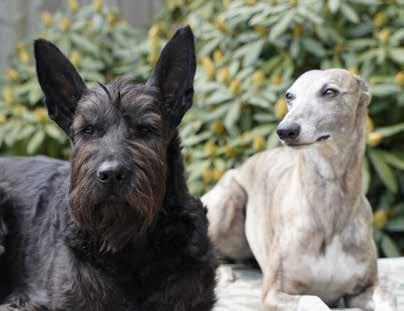 Fifi er en riesenschnauzer på 9 år. Hun er født i Grækenland og blev fundet i en container med sine kuldsøskende, kasserede som skrald, fordi de var syge med parvovirus. Heldigvis blev de reddet af en græsk dyreværnsorganisation og kom derefter til Danmark, hvor Pia adopterede Fifi. Conrad er en whippet på 3 år, som havde haft fire forskellige hjem, før han flyttede ind hos Pia. Conrad kunne ikke være alene hjemme, men det har han lært nu.