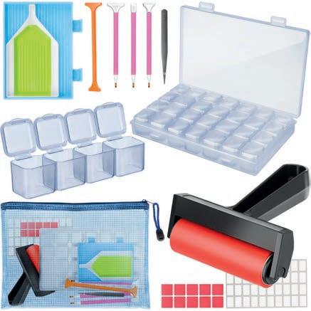 W zestawie: łopatka z otworami, szpatułka, łopatka do ciast, szpatułka z zaokrąglonym bokiem, łyżka, łyżka cedzakowa z otworami, łyżka do makaronu, pędzel, szczypce, chochelka, trzepaczka, pojemnik na akcesoria.