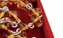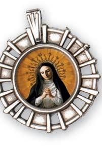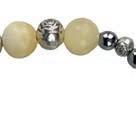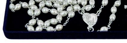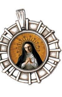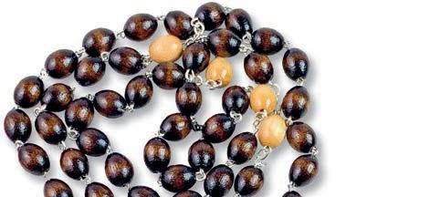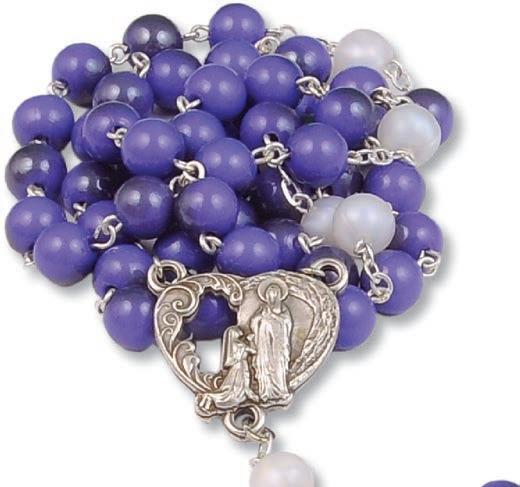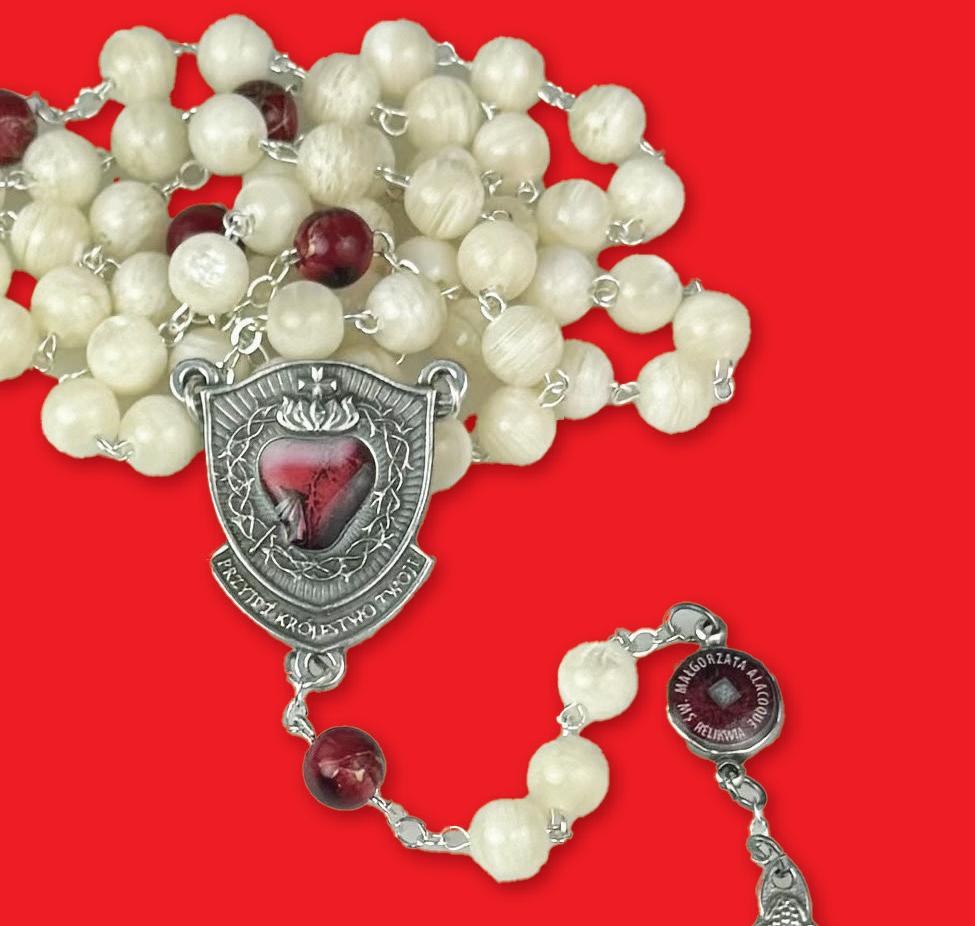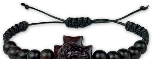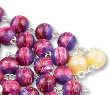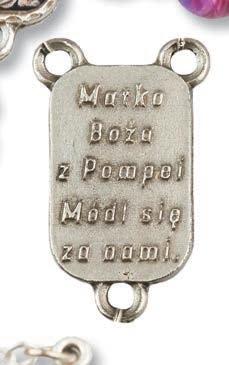 Bransoletka skomponowana z dwudziestu dwóch pomarańczowych oraz siedmiu transparentnych szklanych koralików, krzyżyka oraz medalika z wizerunkiem św. Rity. Wszystkie elementy umieszczono na metalowej żyłce, która dopasowuje się do wielkości nadgarstka. Zestaw zawiera różaniec oraz obrazek z instrukcją modlitwy. Materiał: żyłka metalowa, szkło. Rozmiar koralików (mm): 6 mm