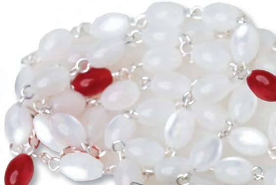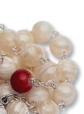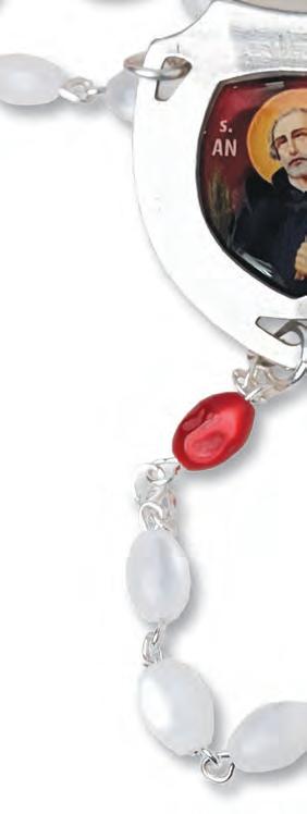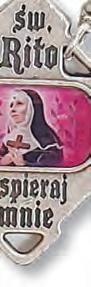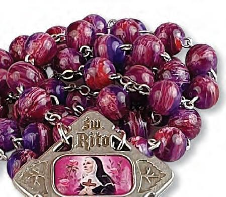 Różaniec przygotowany z myślą o czcicielach św. Rity, patronki od spraw najtrudniejszych. Ozdobą tego pięknego różańca jest specjalnie zaprojektowany i wybity okazały łącznik. Obok wizerunku Świętej i modlitewnej inskrypcji, zatopiono w nim drobinki płatków róż poświęconych na tradycyjnym nabożeństwie ku czci Świętej odprawianym każdego 22-go dnia miesiąca w kościele św. Katarzyny w Krakowie. Każdy różaniec certyfikowany, wygodne jutowe etui.